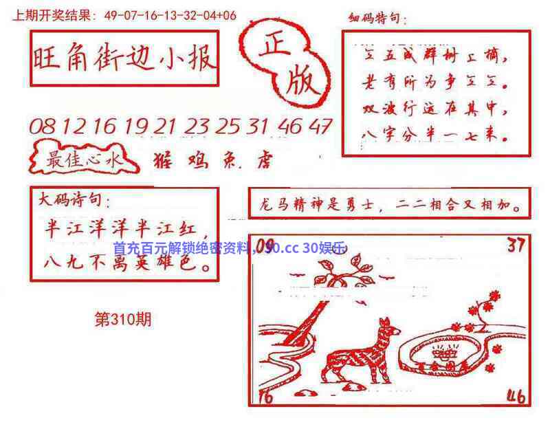 | 310期 | 羊 | 红波单 | 2尾 | 开虎16 |